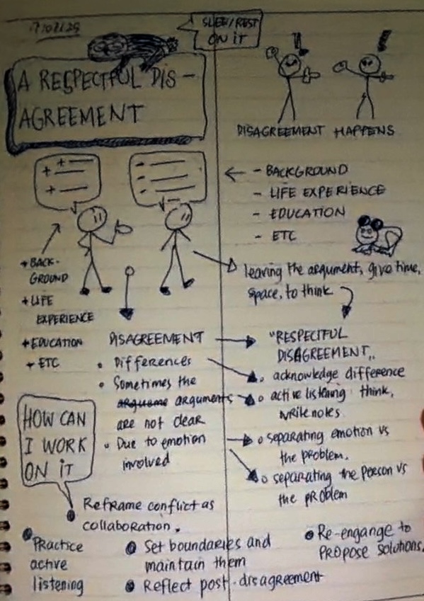 Menjaga rasa hormat dalam perbedaan pendapat (respectful disagreement) menunjukkan kedewasaan dan kekuatan. Hal ini membantu kita membangun kepercayaan, belajar dari orang lain, dan berkembang—bahkan ketika konsensus tidak mungkin dicapai.