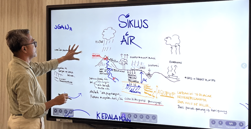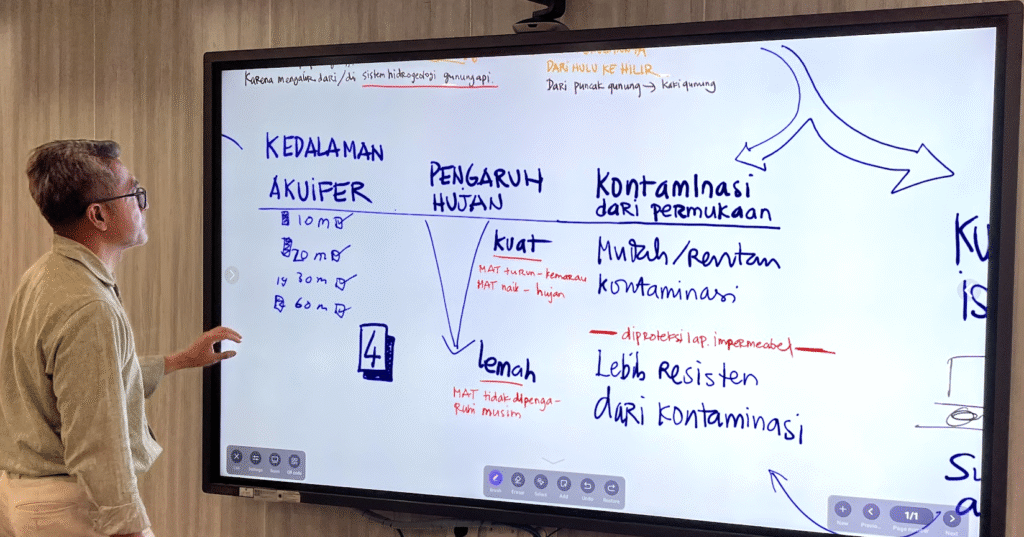 Meskipun penjelasan ini awalnya saya sampaikan kepada dua jurnalis yang berkunjung dua hari lalu, saya berharap kontennya dapat dibaca dan dipahami oleh khalayak yang lebih luas. Upaya keras telah dilakukan untuk menggambarkan proses hidrogeologi sesederhana mungkin, sehingga diharapkan visualisasi ini mampu memperkaya pemahaman masyarakat tentang air pegunungan, siklus air, dan sistem air tanah.